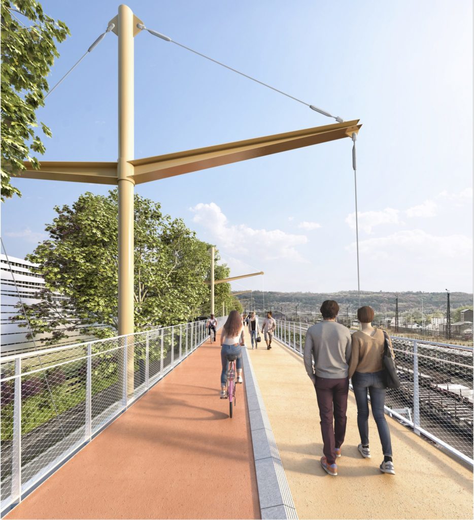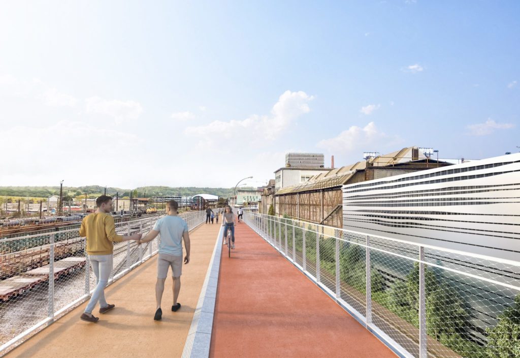 Cette liaison cyclable directe passera par une passerelle d’une longueur de 1,2 kilomètre, perchée à 7,5 mètres au-dessus du sol. L’ouvrage disposera de deux rampes séparées, une pour cyclistes et une pour piétons, adaptée aux PMR,