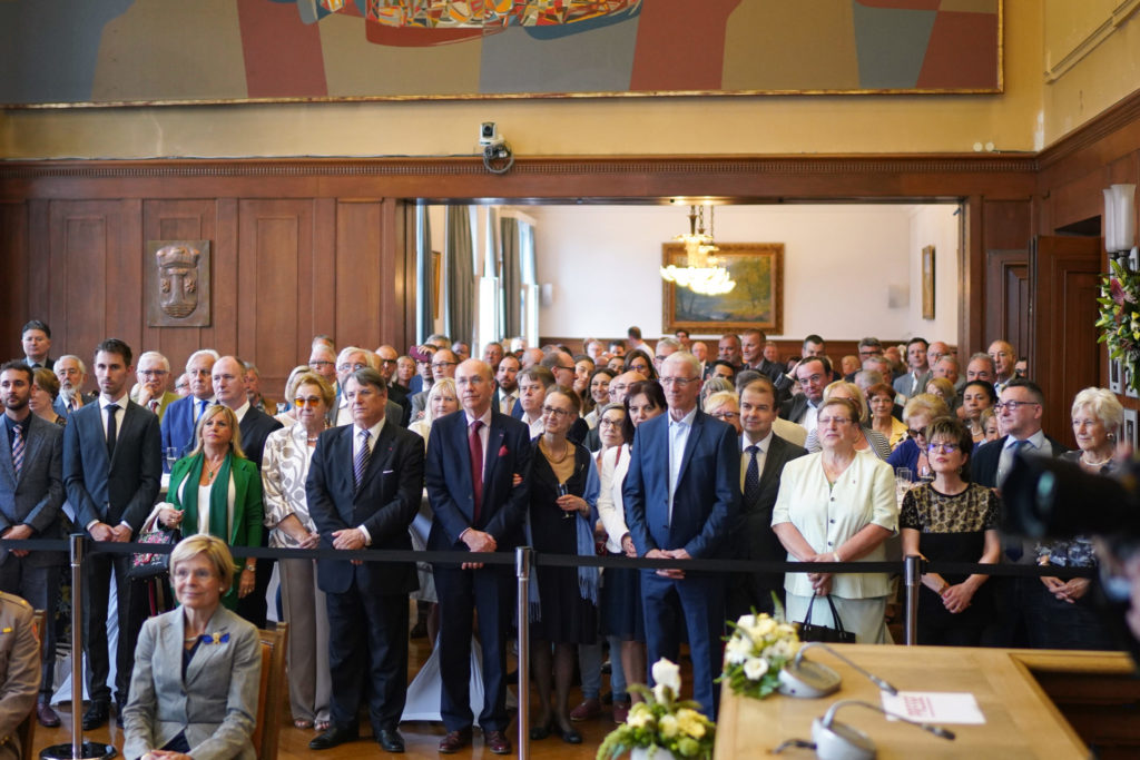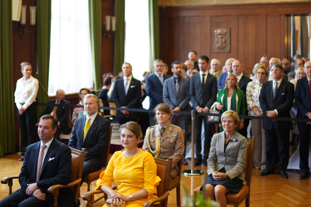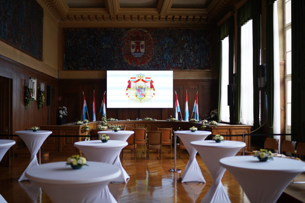 - 18h00 Réception officielle en l’honneur de Leurs Altesses Royales. Encadrement musical par l’Ensemble a Plectres Municipal d’Esch – Hôtel de Ville