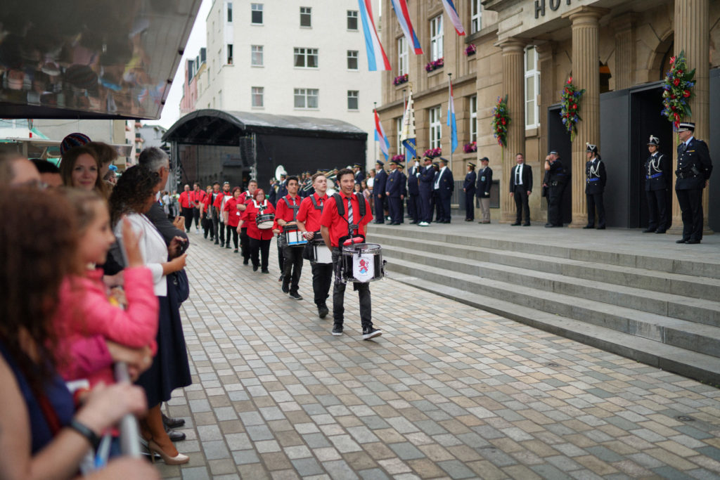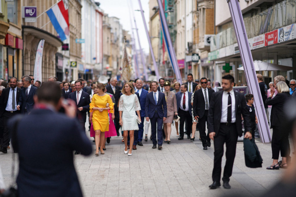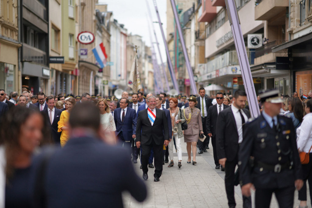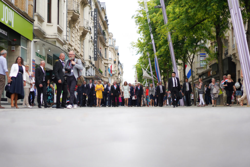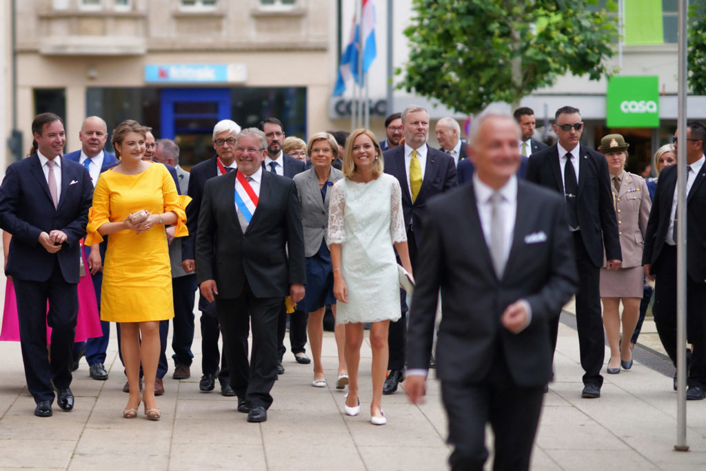 - 17h15 Cortège avec Leurs Altesses Royales de la Place de la Résistance vers l’Hôtel de Ville par la rue de l’Alzette