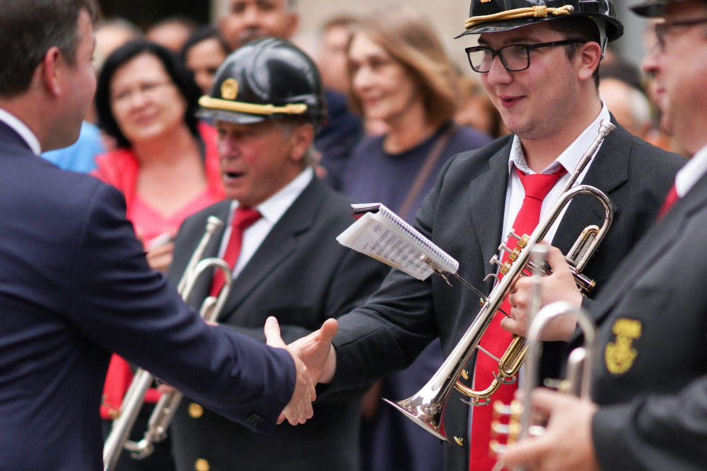 Pompiers et au Personnel de la Ville – Hôtel de Ville - 17h00 Arrivée et Accueil de Leurs Altesses Royales, le Grand-Duc Héritier et la Grande-Duchesse Héritière « Wilhelmus » par l’Harmonie Municipale d’Esch-sur-Alzette – Place de la Résistance